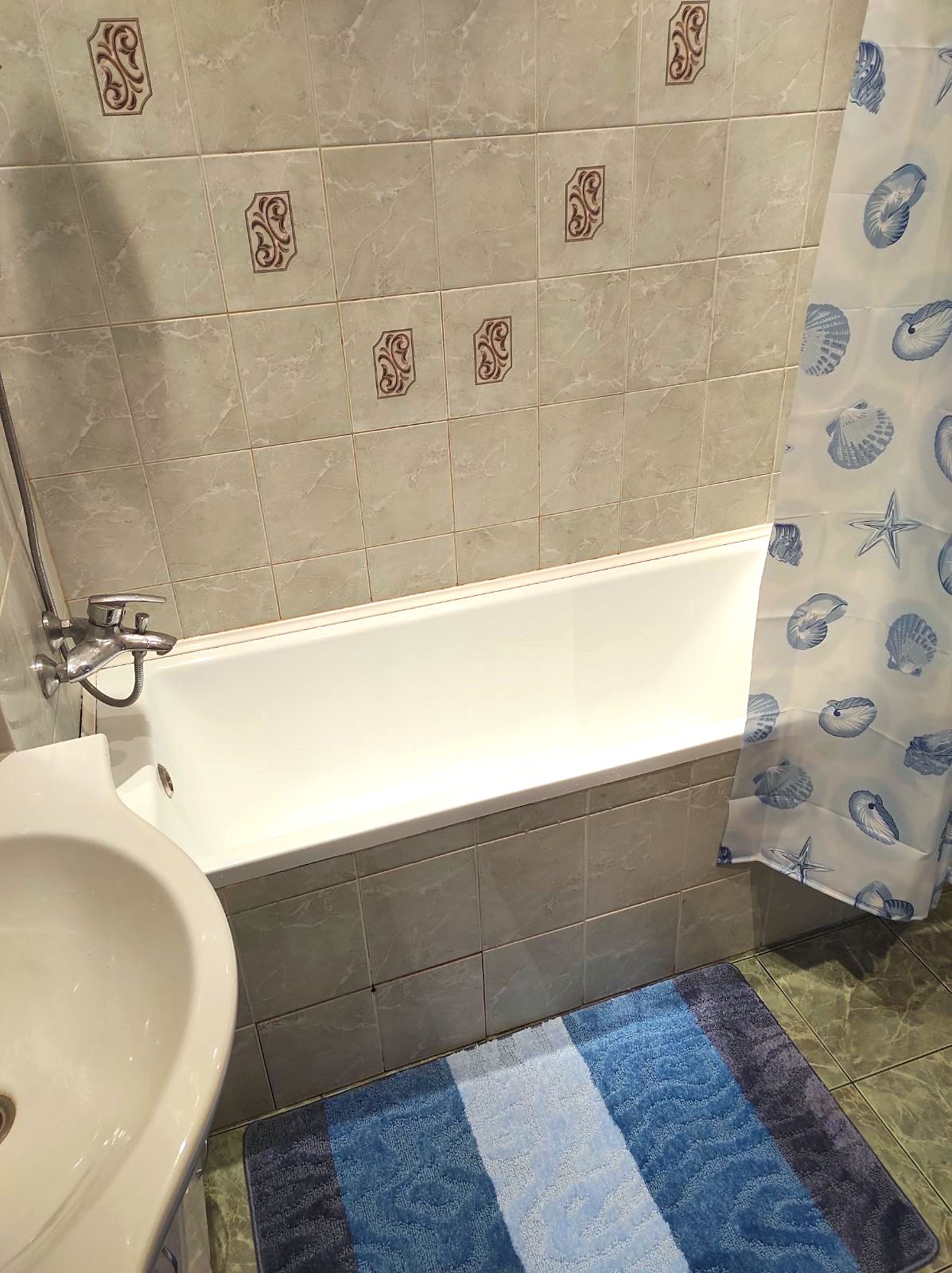 Санузел совмещен т/ванная, установлен бойлер 80л и стиральная машинка, полотенцесушитель.