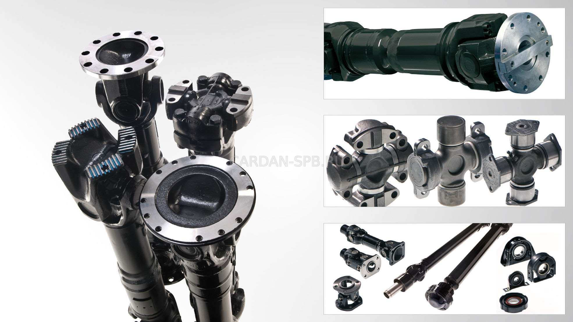 Хрестовини, проміжні підвісні опори, фланцеві та приварні вилки, шліцеві з'єднання тощо.