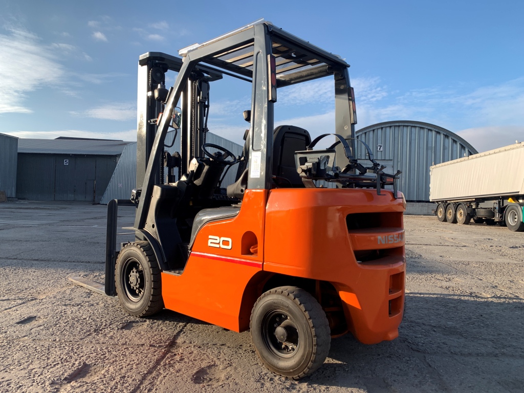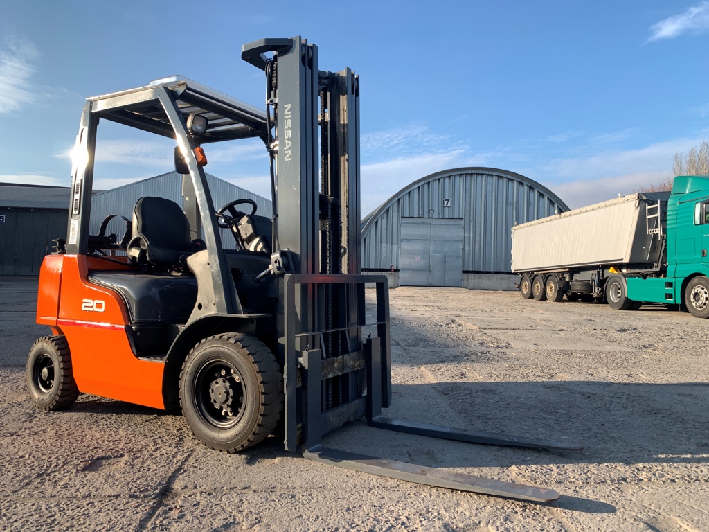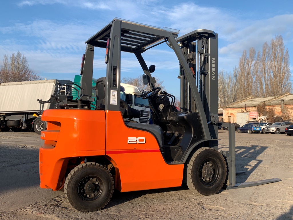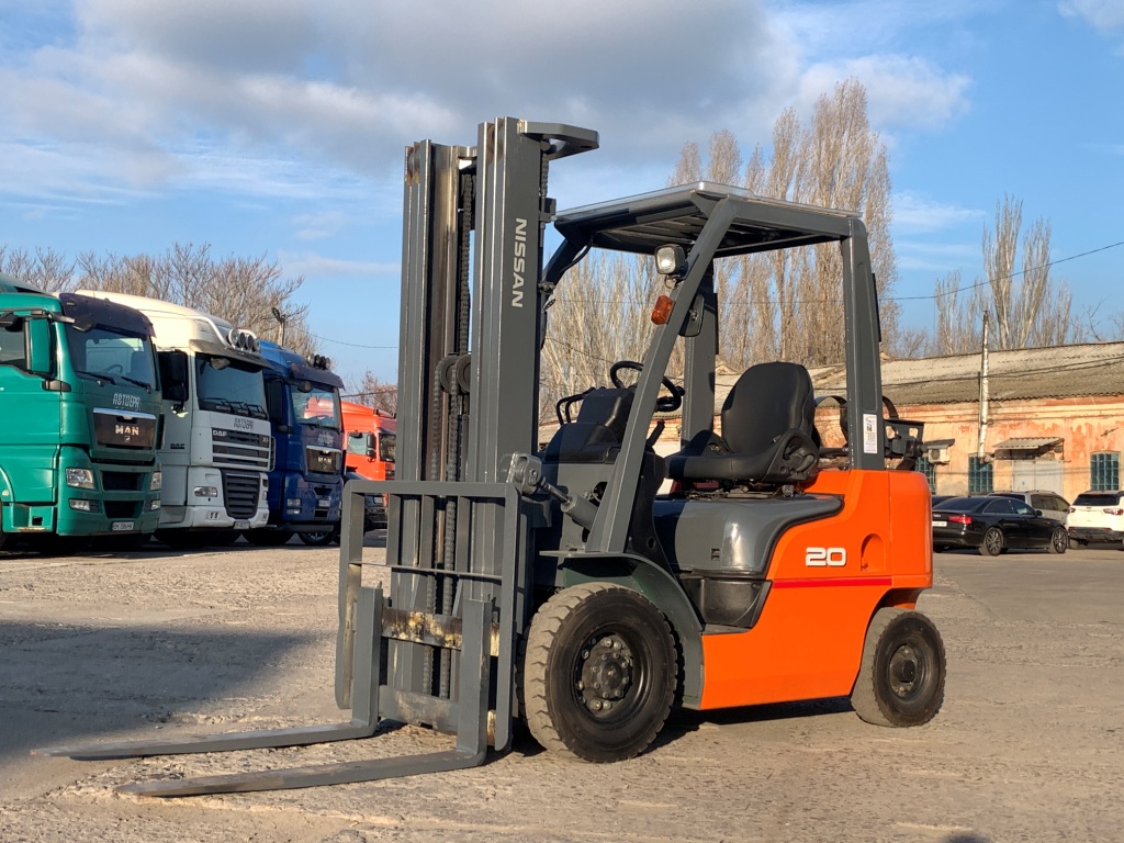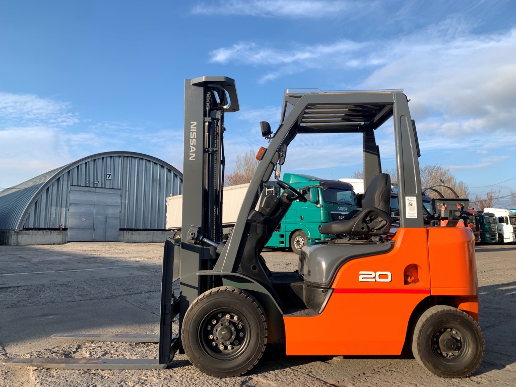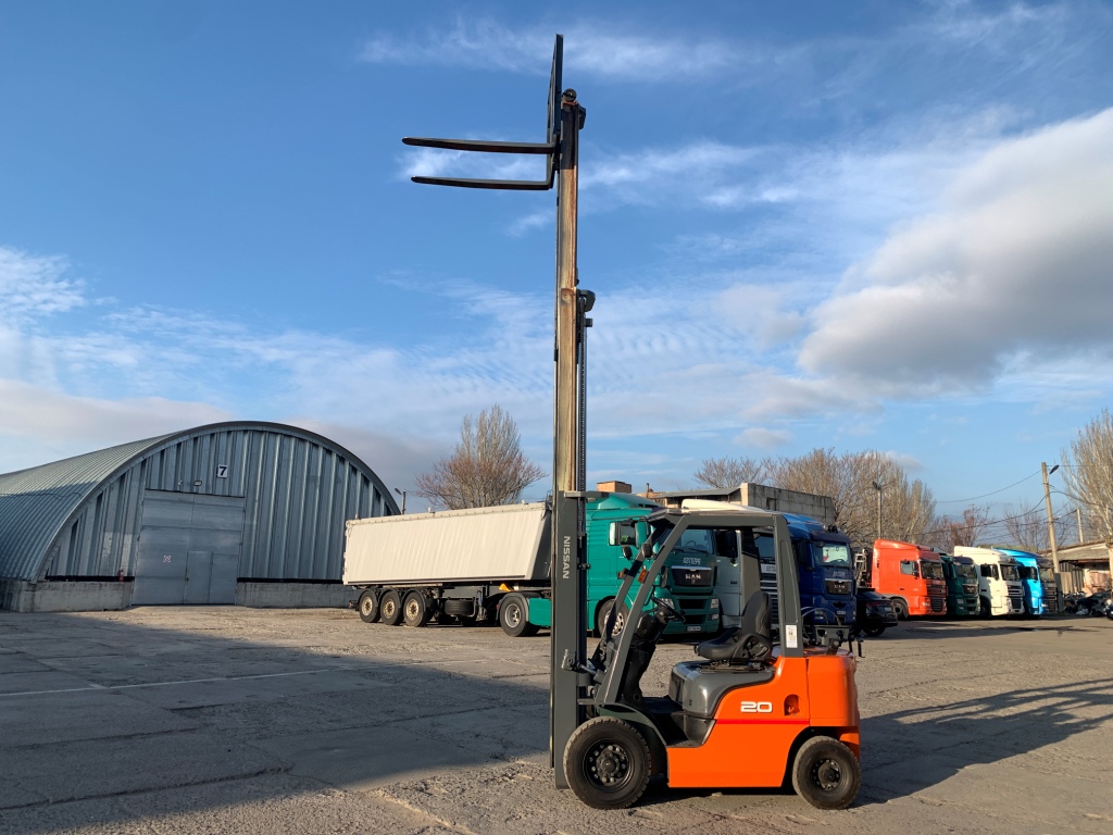Модель: P1F2A20D. Випуск 2014 року. Номiнальна вантажопідйомність 2 тонни. Максимальна висота підйому вантажу 5.1 метри. Щогла трьохсекційна (triplex/триплекс) у якій вила піднімаються незалежно від секцій щогли (з вільним ходом/вагонник/контейнерного типу). Двигун газ-бензиновий, з заводським газовим обладнанням, завдяки чому автонавантажувач у теплу пору року можє запускатись вiдразу на газу, без прогріву системи на бензині. Коробка перемикання передач надiйна i найпоширенiша на данний час - гiдромеханiка (автоматична із гідротрансформатором). Обладнаний сучасним економічним інжекторним двигуном Nissan K21. 4-циліндровий, робочим об'ємом 2.1 літра і потужністю 48 к. с. який славиться своєю надійністю і невибагливістю і без особливих змін встановлюється на автонавантажувачах по сьогоднішній день і головне ремонтопридатний. Колеса пневмо12 діаметра на ведучiй осі, що покращує прохідність автонавантажувача і збільшує його кліренс.