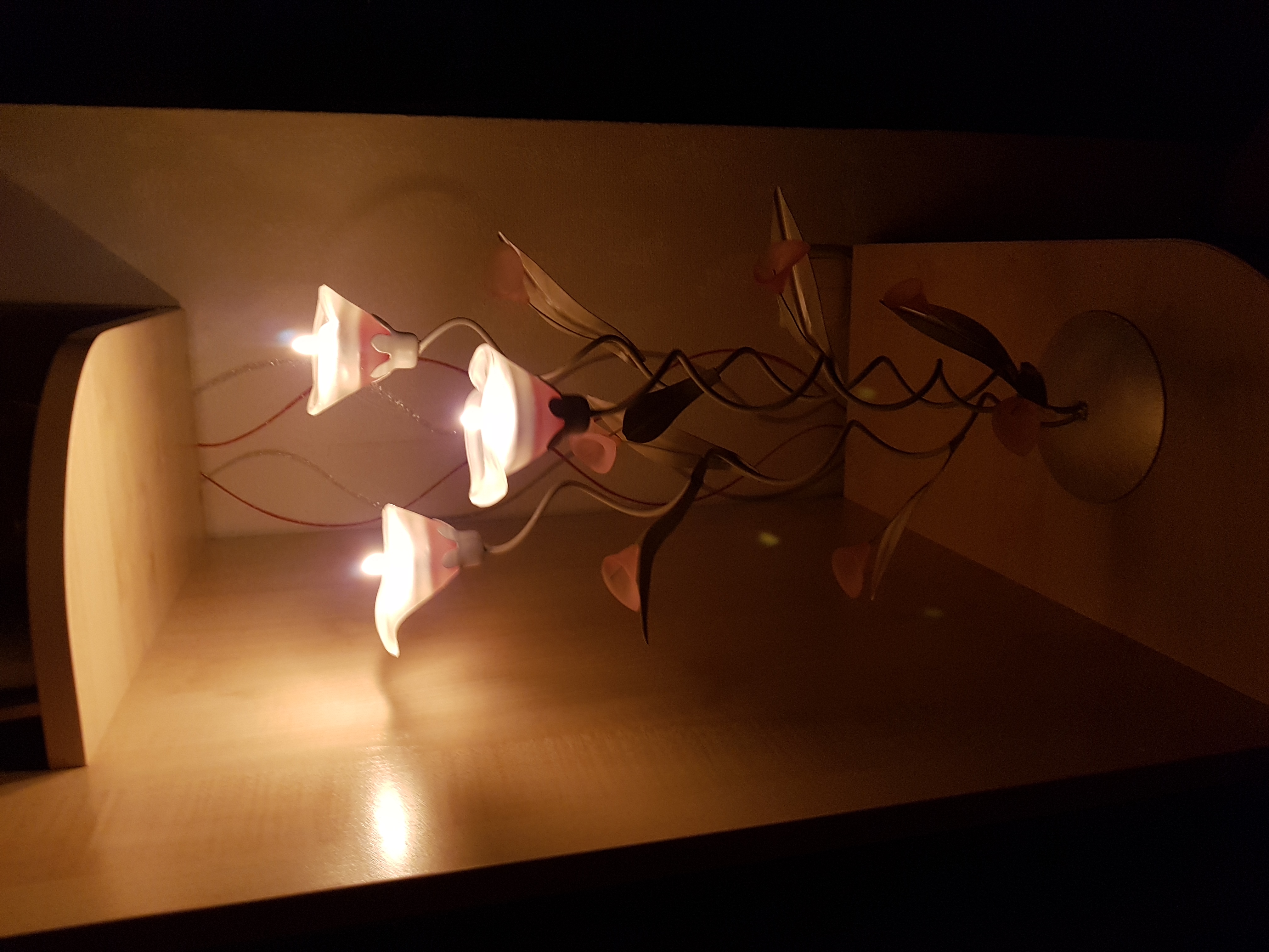 Прекрасный подсвечник выполненный в форме цветущей каллы в нежно розовом цвете. Для трех маленьких свечей(таблетки)прнкрасно подойдет для подарка