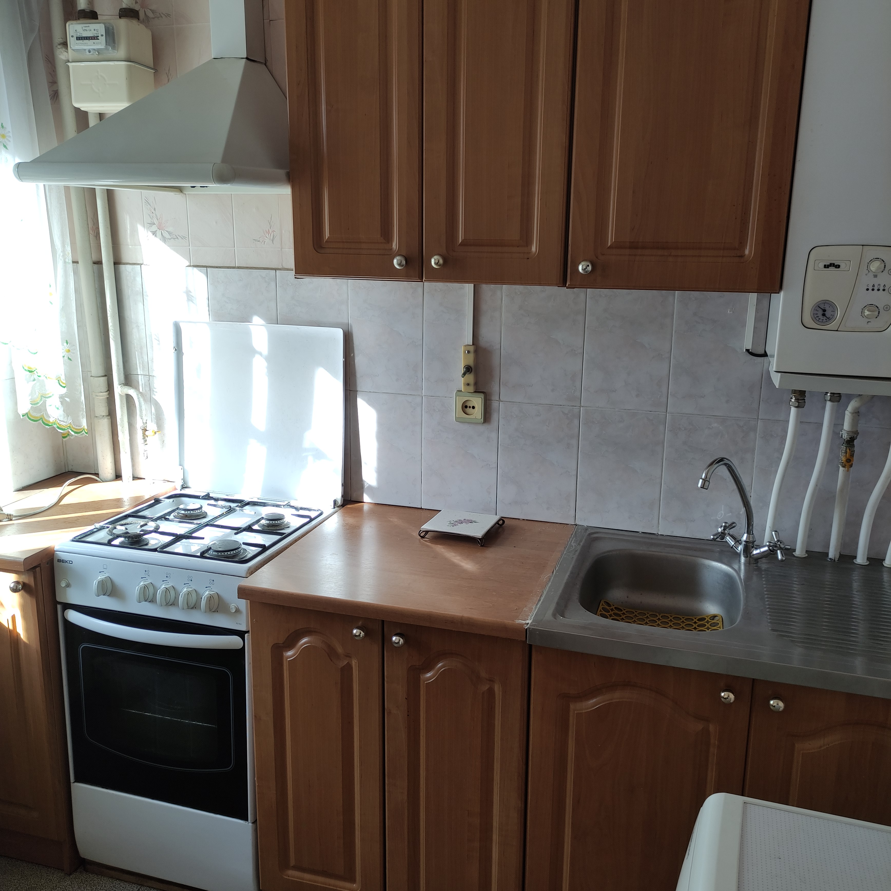 Продам однокомнатную квартиру на пр. Шевченко. 3/5.Встроенная кухня, сан. узел облицован(совмещен). Необходимая бытовая техника, стиральная машина автомат, телевизор. Бронированная дверь. Балкон застеклен. Автономное отопление. Газ, свет, вода-счетчики.