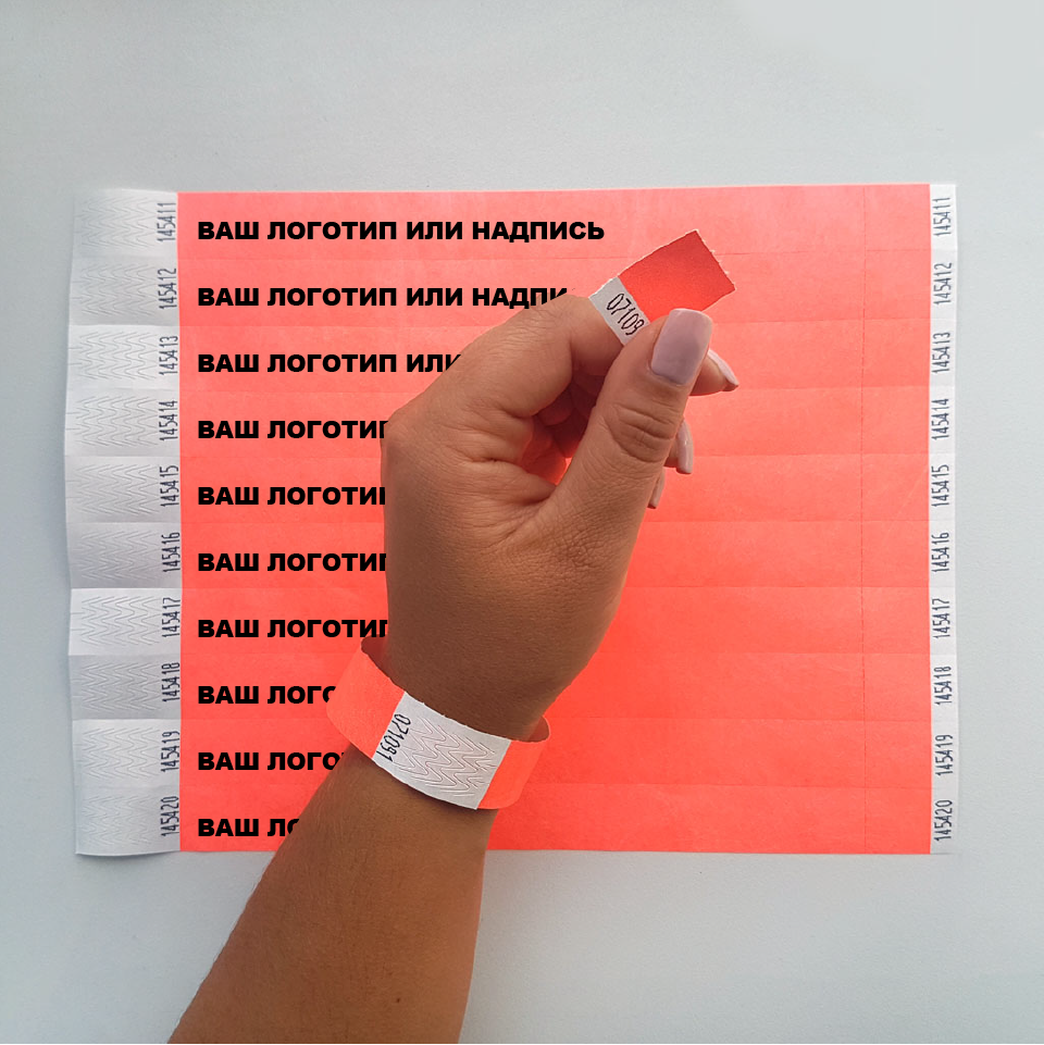 Одноразовий контрольний браслет з вашим логотипом Кораловий 100 шт – це економічне та практичне рішення для ідентифікації та контролю доступу на заходах різного масштабу. Виготовлені з міцного та вологостійкого матеріалу Tyvek, ці браслети забезпечують надійну фіксацію на зап'ясті завдяки одноразовій клейовій застібці.