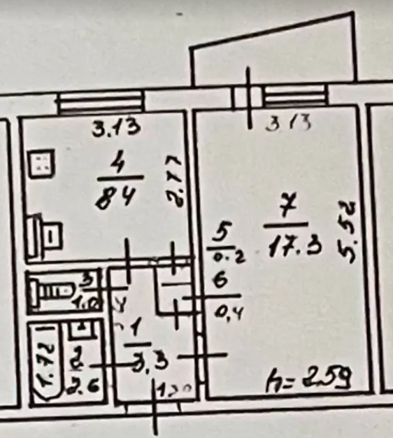 Ця квартира має загальну площу 34 кв.м, з яких 17.3 кв.м припадають на житлову зону. Також у квартирі є простора кухня площею 8.5 кв.м, що створює комфортні умови для готування та прийому їжі. Висота стель складає 2.7 метра, що робить приміщення візуально просторішим.