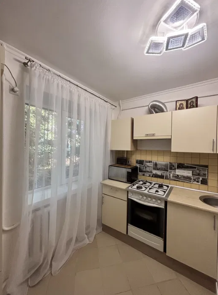 Квартира на першому поверсі пʼяти поверхового будинку. Вікна виходять на зелену зону. Зроблений якісний ремонт. Замінена вся електрика та сантехніка, встановлений кондиціонер. Зроблено перепланування в кухню студію. Замінені всі вікна на металопластикові, на вікнах грати. Кухня та диван залишаються.