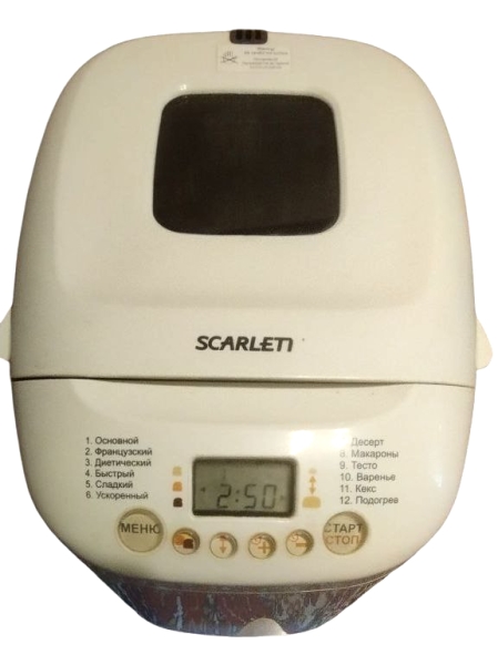 Продам хлібопічку Scarlett SC-400 у неробочому стані (збивається програма) під ремонт або на запчастини. Вир-во Китай.