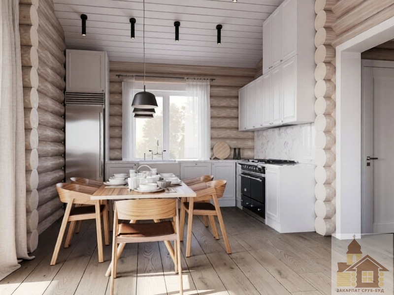 Мрієте про затишний дерев’яний дім, де комфорт і стиль ідуть поруч? Проєкт «Букова Тиша» пропонує зруб з рубленої колоди з продуманим плануванням, просторою вітальнею та панорамними вікнами. Натуральні матеріали, прозора ціна зрубу за квадратний метр та можливість одноповерхового будинку зі зрубу роблять його ідеальним вибором для життя і відпочинку. Переглянь проєкт і створюй свій зруб під ключ вже сьогодні!