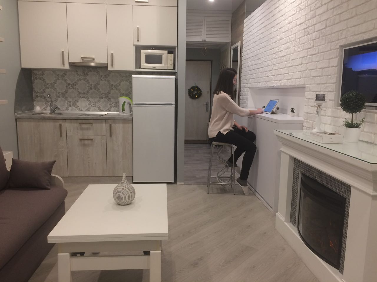 Сучасна затишна квартира-студія в самому серці Одеси, поруч з парком Шевченка, 15 хвилин до моря. Сучасний авторський ремонт, якісні матеріали, меблі, сантехніка, все прораховано до дрібниць. Броньовані двері, тамбур, кондиціонер, вай фай (оптоволоконний кабель), тепла підлога, ламінат, плитка, камін, пральна машинка, холодильник, електроплита, мікрохвильовка, душова кабіна, бойлер, сучасне багатофункціональне зручне підсвічування, 2 смарт-ліжка з ортопедичними матразами (двоспальне і одинарне), диванчик з ящиком для білизни, журнальний стіл-трансформер, збільшене вікно з лаундж-зоною на підвіконні, штори блекаут, ролети на вікні, що повністю закривають сонячне світло, зовні елегантна напівкругла решітка з місцем для квітів. Багатофактюрні комбіновані стелі, дзеркальні панелі для збільшення простору, шкіряна м'яка оббивка вішалки в передпокої і дзеркальне панно з фацетом надає елегантний стиль, мініатюрна шафка для взуття, стильна містка ніша.