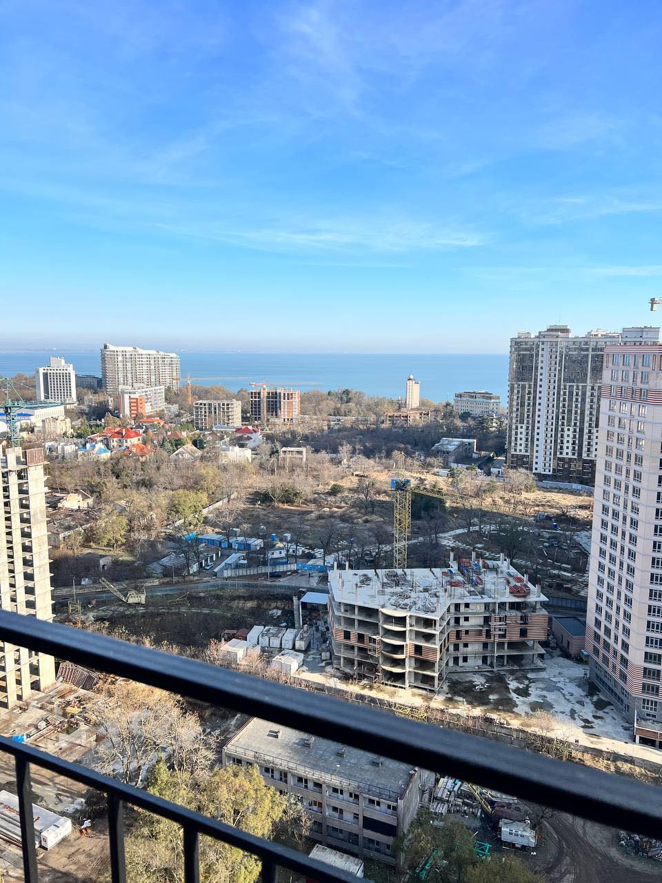 Продаю квартиру 67 м2 (студія зі спальнею) в ЖК "Еллада" 24 поверх, прямий вид на море! У квартирі виконано ексклюзивний дизайнерський ремонт! Дерево, нат. камінь, метал, керамограніт, оксамит, екошкіра, шпалери "VERSACE"! Міжкімнатні двері – індивідуальний ескіз!
