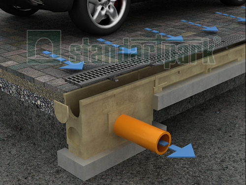 Полімербетон в два рази легший і міцніший ніж традиційний бетон на основі води та цементу. Він абсолютно не боїться впливу агресивного середовища. Він не пропускає вологу, володіє високою морозостійкістю і здатністю до ударних та динамічних впливів. Системи поверхневого водовідводу із полімербетону представлені в 4 серіях - серія Mini, серія Standard, серія Maxi і серія Maxi+.