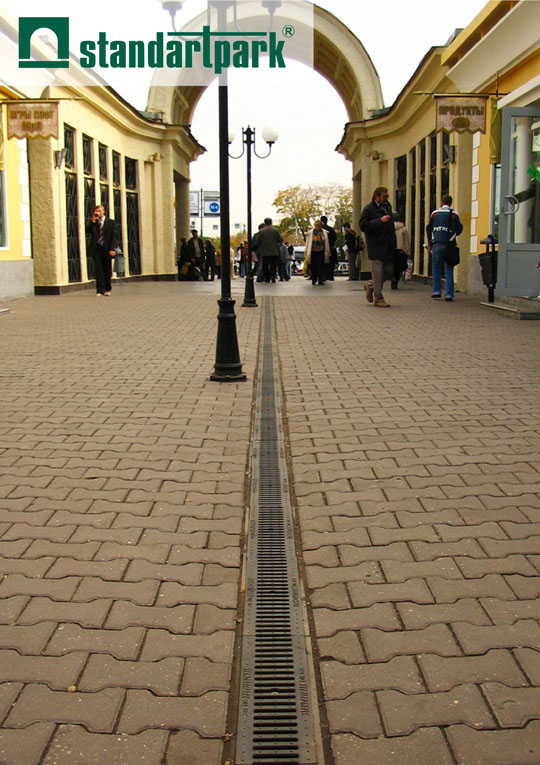 Системи поверхневого водовідводу призначені для збору талої та дощової води з поверхні та відводу цієї води у дощову каналізацію. Лінійний водовідвід представляє собою систему заглиблених лотків (водозбірних каналів, водостоків) і пісковловлювачів – призначених для затримки, винесених потоком води, піску і дрібного сміття. Зверху водостоки і пісковловлювачі закриваються знімними захисно-декоративними решітками. Решітки перешкоджають потраплянню в систему сміття, листя, а також забезпечують безпеку переміщення пішоходів і транспорту. Через систему вертикальних і горизонтальних відводів лінійна дренажна система з’єднуються з дощовою каналізацією.