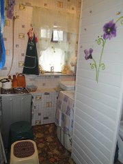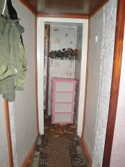 стол. В коридоре холодильник. Кухня 4 м. с встроенным туалетом и