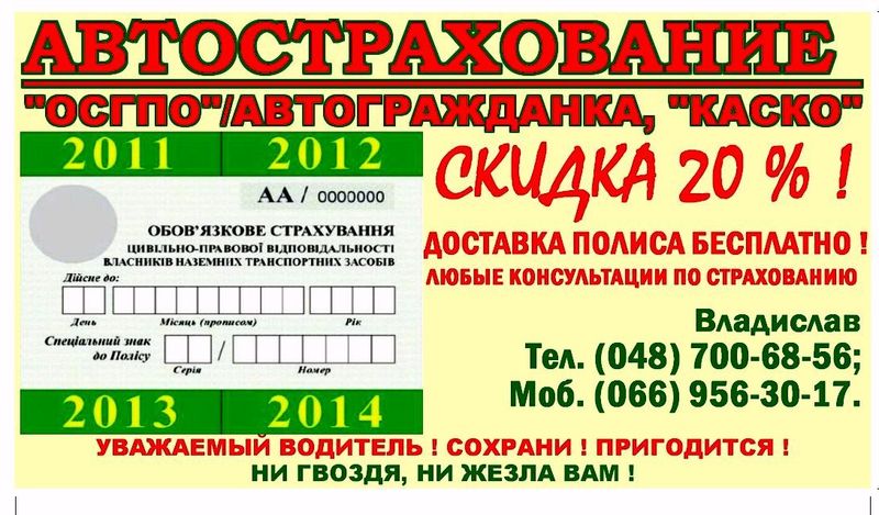 тел. 066 956 30 17, (048) 700 68 56. (Владислав)
