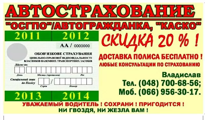 АВТОСТРАХОВАНИЕ, "АВТОГРАЖДАНКА"/"ОСГПО", СКИДКА - 20%